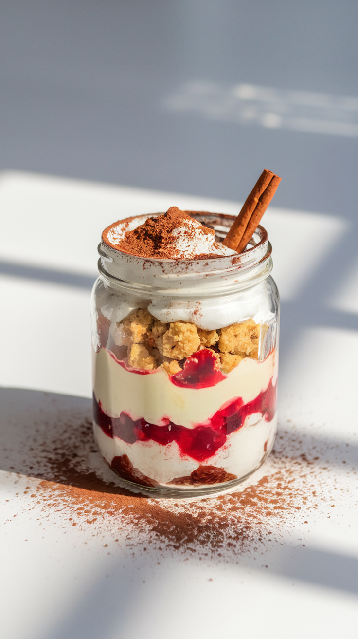 - Schichte Quark oder Mascarpone mit Keksen und Früchten.
