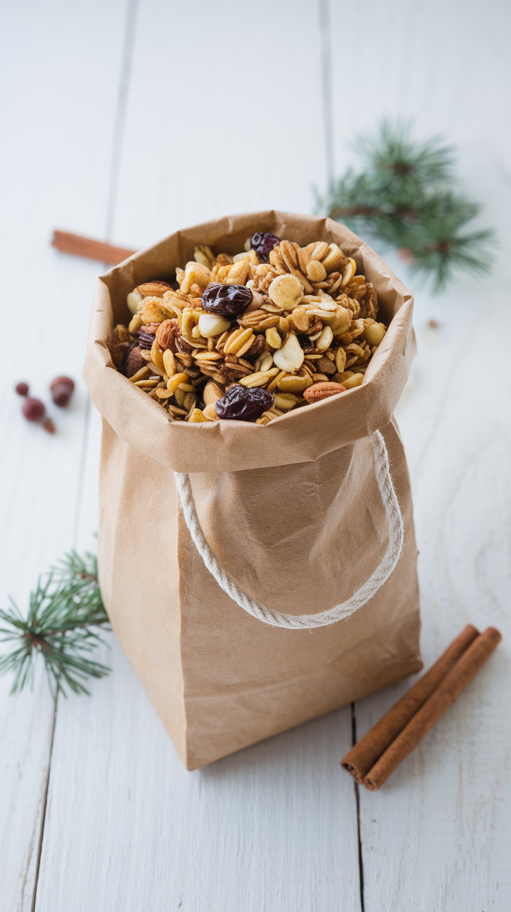 - Verpacke das Granola in Papiertüten mit Klammern oder Schleifen.