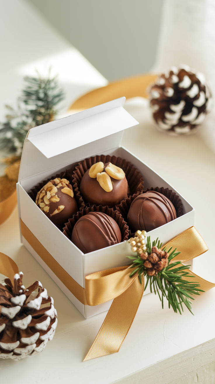 Handgemachte Pralinen sind ein Klassiker unter den Weihnachtsgeschenken. Sie sehen toll aus und zeigen deine Mühe.