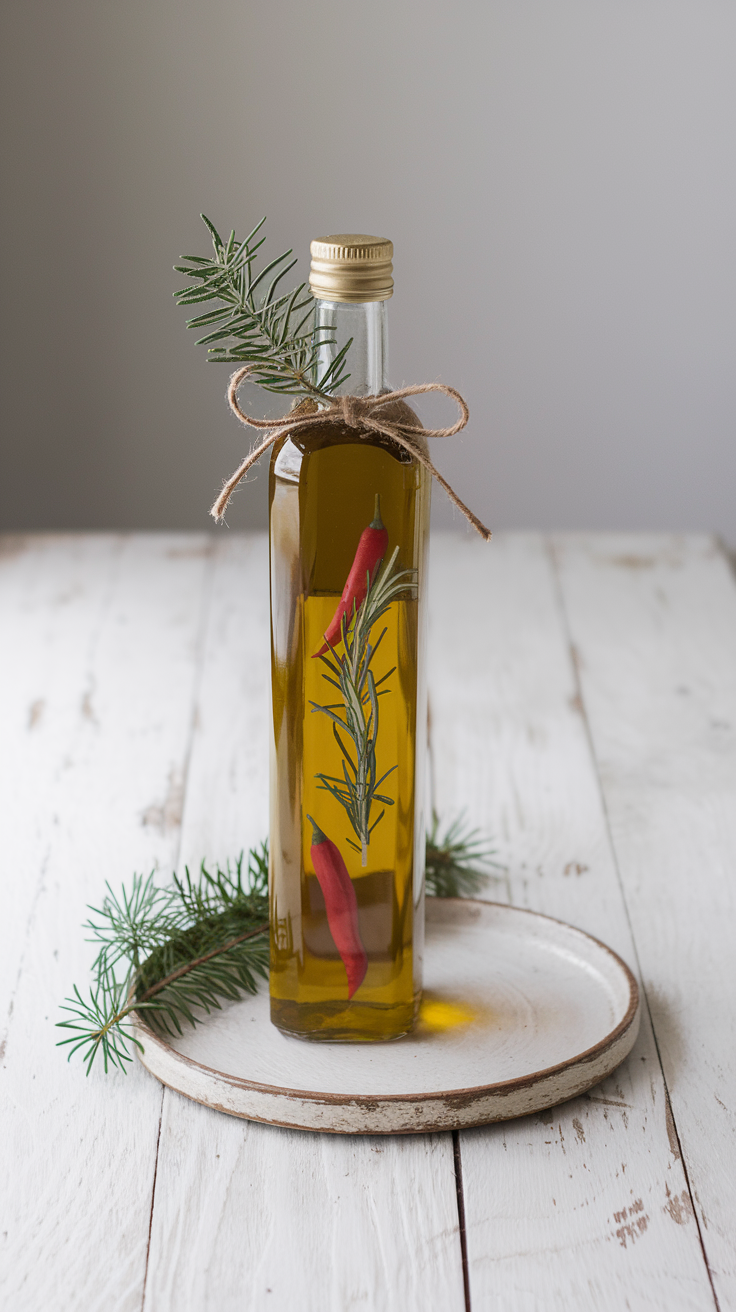 Ein kleines Fläschchen mit selbstgemachtem Öl macht jedes Gericht feiner. Es sieht toll aus und hält lange.