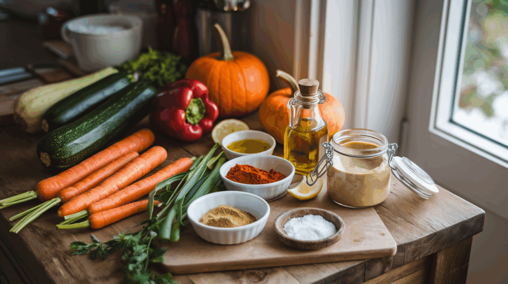 Essentielle Zutaten für Ofengemüse mit Hummus