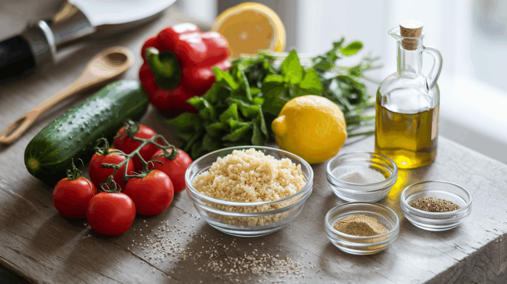 Damit dein Salat richtig aromatisch und frisch gelingt, brauchst du nur wenige, aber wichtige Zutaten. Sie sorgen für Geschmack, Farbe und die typische orientalische Note.